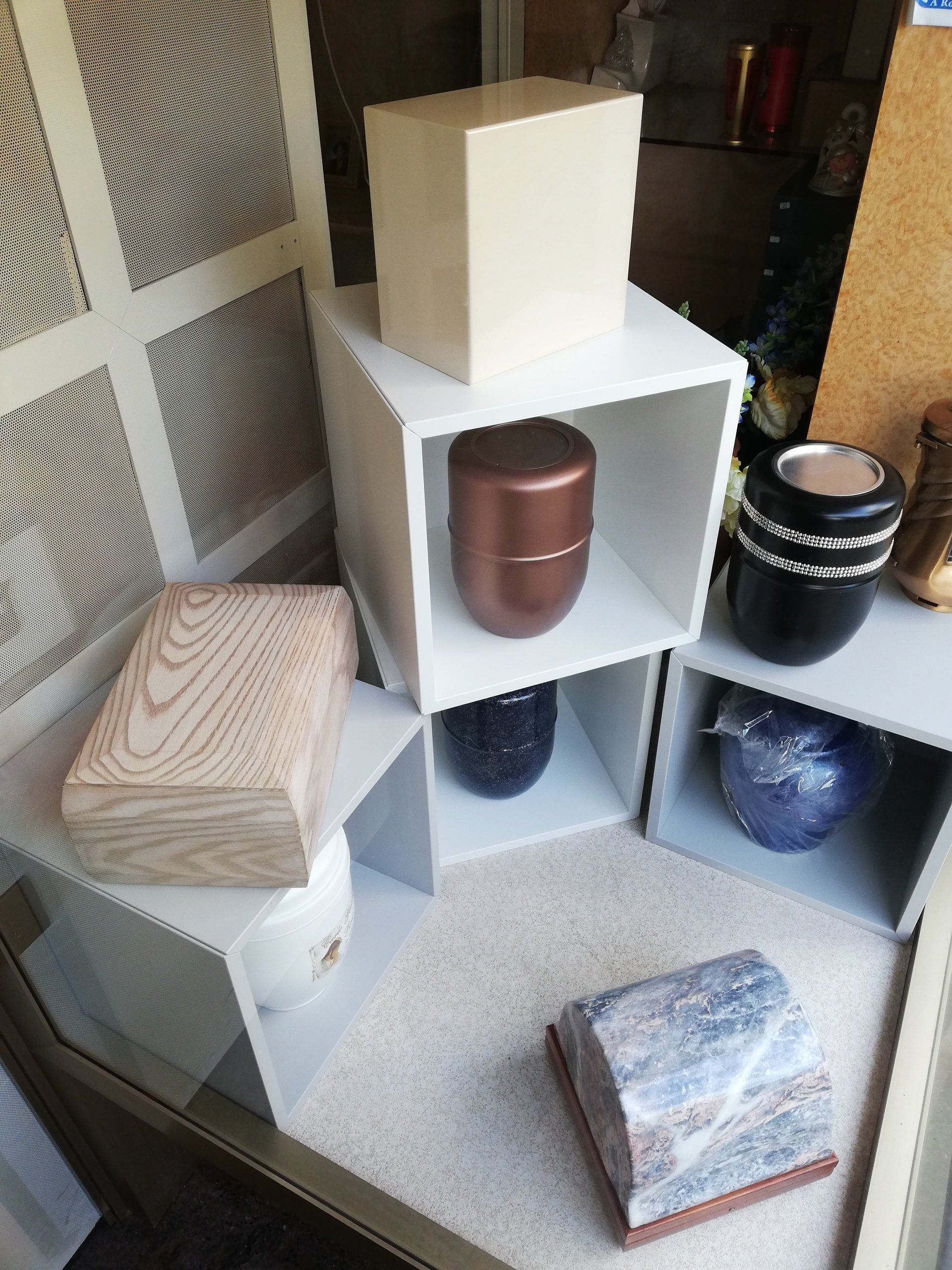- urne cinerarie in vari materiali, dimensioni e modelli;
